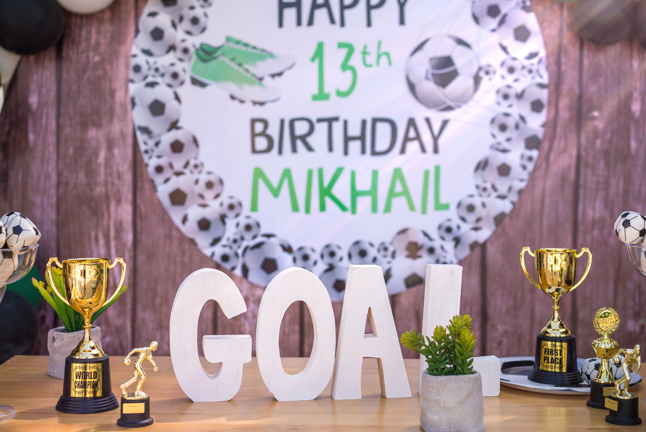 The central theme of the party was the birthday boy's love for football, which was reflected in every aspect of the organization. We designed the decorations, cake, and desserts, as well as selected prizes for guests that matched the football passion. The decor elements, sweets, and gifts for participants were imbued with the spirit of a sports celebration.