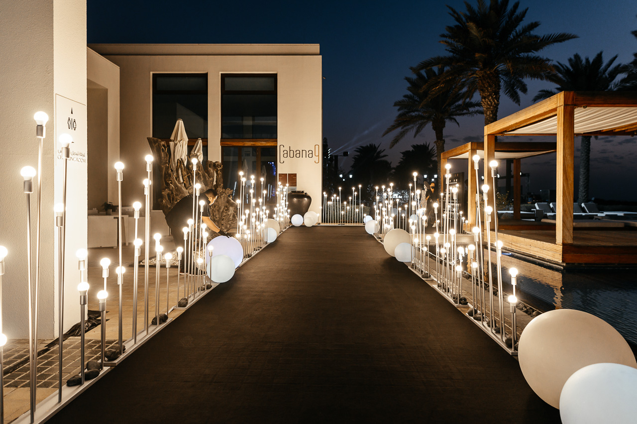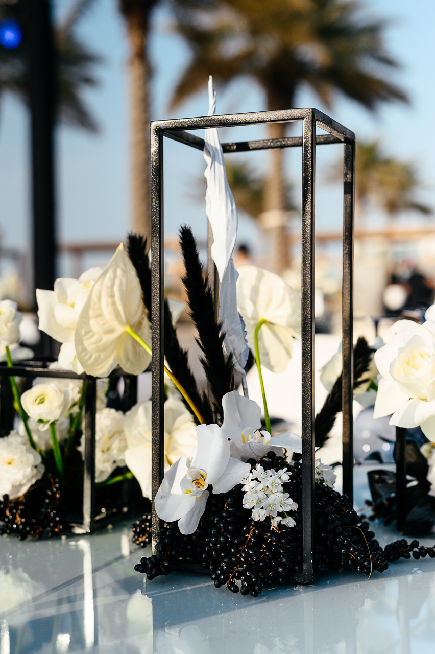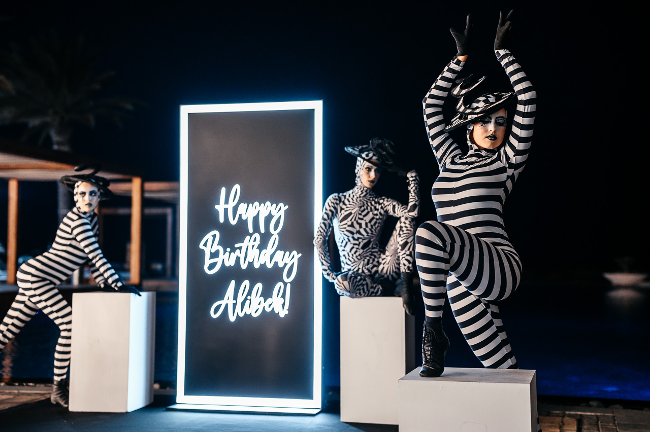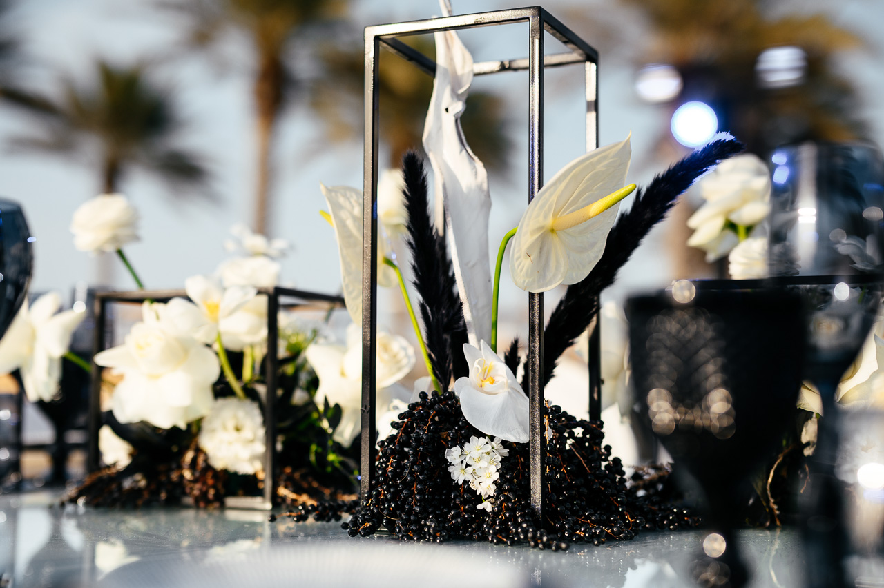 On Saadiyat Island, where every sunset seems like a masterpiece, a birthday celebration took place not just for any man, but for a true gentleman, whose persona demanded a special approach. This time, the choice was made for a design enveloped in the grandeur of black and white tones, where every shade and every line spoke of masculine qualities: strength, determination, confidence, and, of course, style.