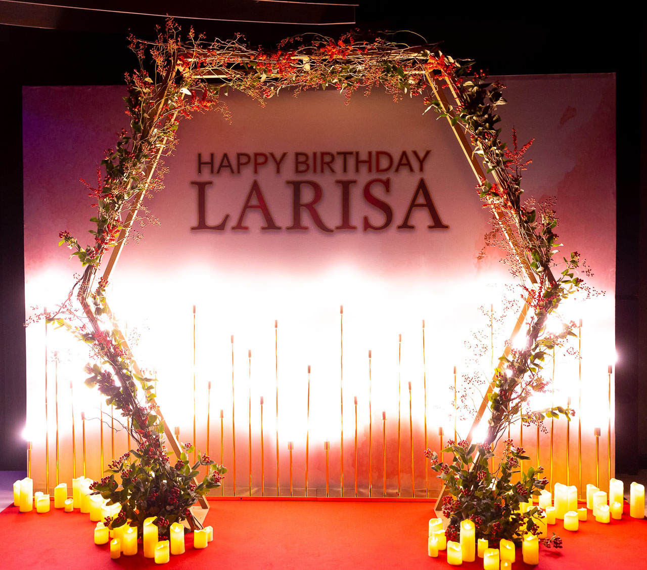 The design, magical and gentle, yet bold and stylish, seamlessly integrated into the evening's theme, celebrating the birthday of a beloved and enchanting lady.
